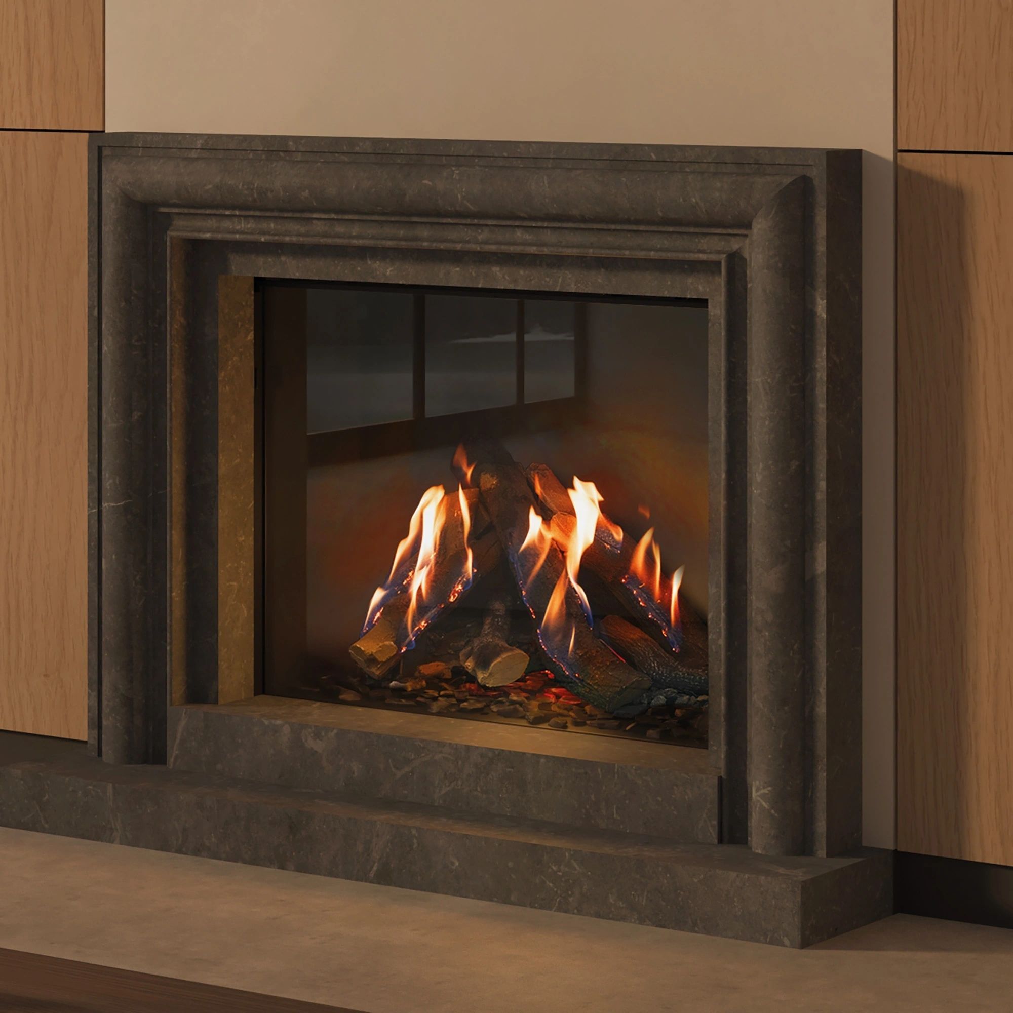 Le revêtement intérieur est en anthracite mat. Les bûches en céramique sont proposées en chêne ou en bouleau. Parmi les technologies intégrées figurent la commande à distance, l’éclairage du lit de braises et l’application Wi?Fi « Fire Connects ».