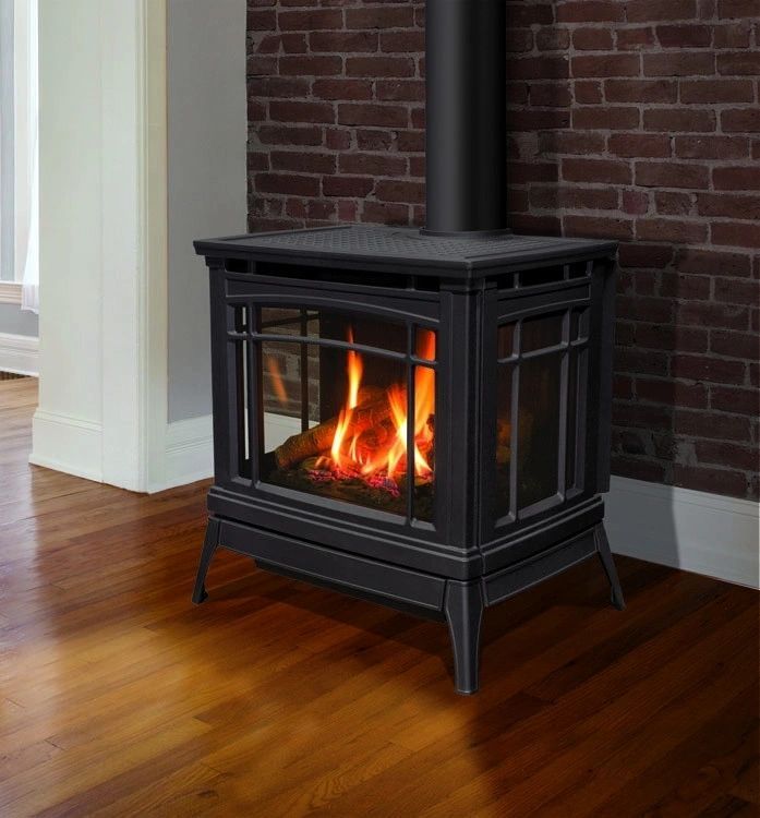 Enviro Berkeley est un poêle à gaz autoportant qui associe une construction en fonte européenne à des accents contemporains, offrant une esthétique traditionnelle avec une efficacité énergétique élevée.