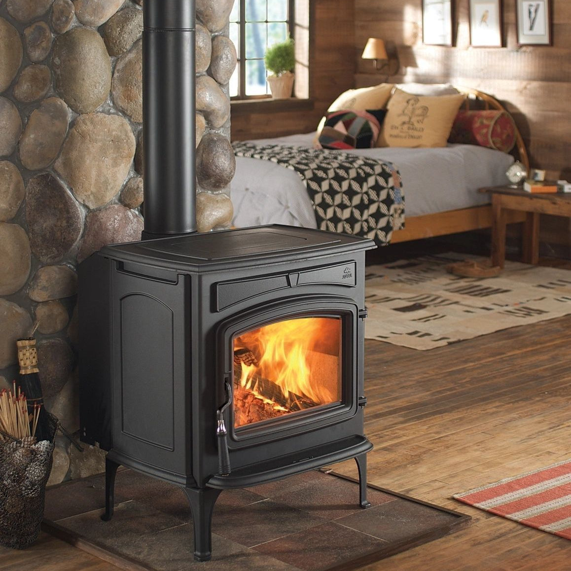 Jøtul F 55 V2 Carrabassett est un poêle à bois de grande taille, entièrement conçu en fonte et en acier, offrant un chargement frontal pratique.