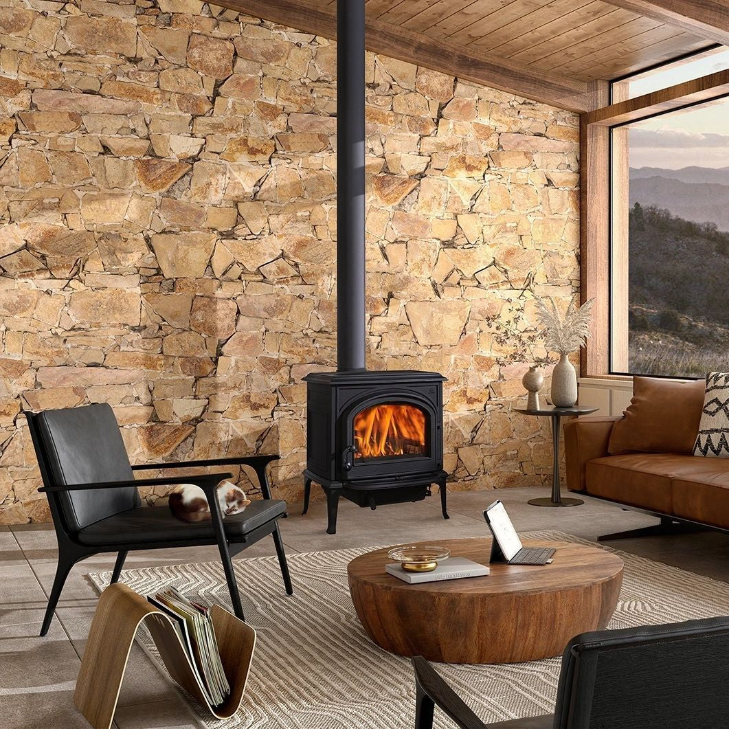 Ses dimensions sont de 74 cm de hauteur, 67 cm de largeur et 64 cm de profondeur, pour un poids de 190 kg. Il accepte des bûches jusqu'à 51 cm et dispose d'une sortie de conduit de 15 cm, avec options de sortie par le dessus ou l'arrière.