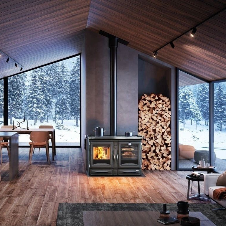 La La Nordica Alaska est une cuisinière à bois polyvalente, conçue pour combiner chauffage et cuisson dans des espaces résidentiels.