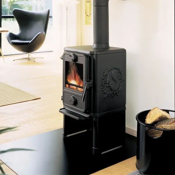 Avec une puissance maximale de 30 000 BTU/h, il peut chauffer des espaces jusqu'à 1 000 pieds carrés. Sa conception scandinave traditionnelle, ornée de l'emblématique écureuil en fonte, apporte une touche esthétique distinctive.