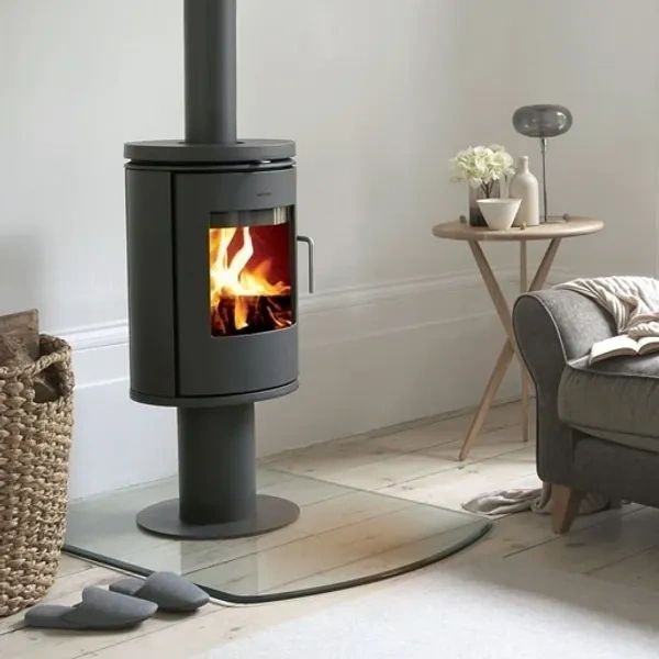 Morsø 6148 B est un poêle à bois sur piédestal en fonte, offrant une vue imprenable sur les flammes grâce à sa large porte vitrée. Son design intemporel et minimaliste s'intègre harmonieusement dans différents intérieurs.