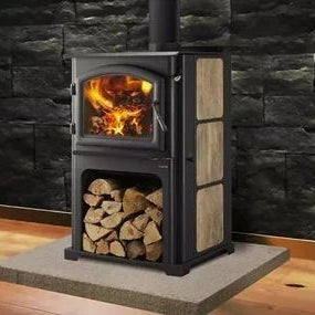 La porte arquée en fonte noire et les panneaux latéraux personnalisables offrent une esthétique élégante, tandis que le bac à bois intégré facilite le stockage du combustible. Ce poêle est certifié EPA 2020, attestant de sa conformité aux normes environnementales les plus strictes.